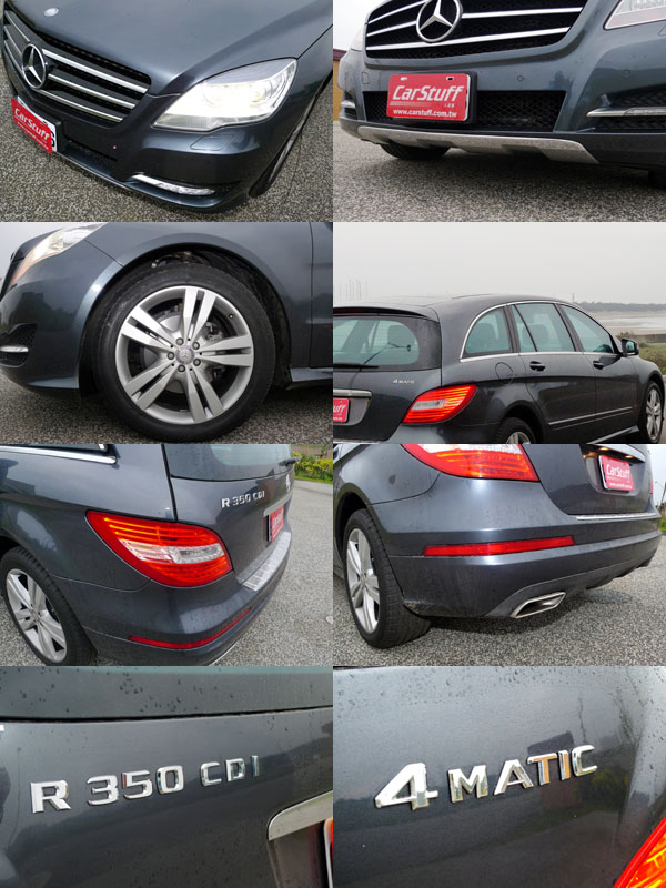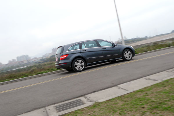 在台灣引進R-Class部分,Mercedes-Benz針對了本地消費者胃口,僅引進了長軸版車型,並且於初期僅有搭載柴油動力地R 350 CDI 4MATIC L一款,而該具排氣量為2967c.c.的共軌直噴柴油引擎,於3800rpm即可可輸出224hp最大馬力,最大扭力則達580Nm〈59.18kgm〉/1600-2400rpm,搭配附方向盤換檔裝置之7G-TRONIC七速自排變速系統,驅動超過2.2噸的車重,在實際駕駛時,拜充沛扭力之賜,仍給予它不錯地動能表現,而且在油門設計上維持了Mercedes-Benz一貫的紮實踩踏感,起步時也許不若日系車那般輕盈,但是循序漸進的動力輸出感,更讓人有種安定的感覺,在油門深淺與動力輸出間的連結感也更為明確,即使重踩油門起步也不會出現有如部分日系車忽然衝出的不適感,但是千萬不要以為這種設定會給人無力感,在沉穩地移動間,隨著窗景迅速移動,你就會發現原來車速早已提升上來。