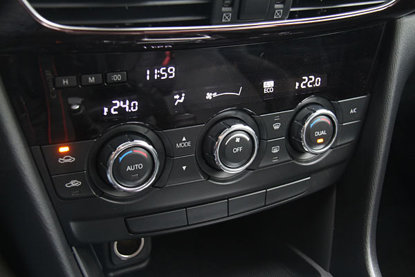 HVAC 左右獨立恆溫空調系統(附室外溫度顯示)。