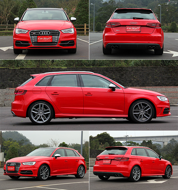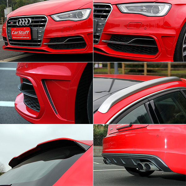 對於外表,或許不少人都以為,打著性能車型的招牌,就該配上誇張的線條修飾,創造極富侵略性的面容。但眼前的S3 Sportback可能離血脈賁張有段距離,以A3 Sportback為基礎修飾而來的外觀,依然不離A3車系原有的味道,簡單優雅而不慍不火。不過,為了提昇更具性能氣息的視覺效果,以及性能提昇後相對應的散熱與空氣力學需求,外觀的細節處理還是有著些許的不同。