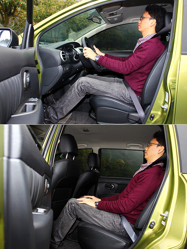 鎖定年輕小家庭的Livina外型上基本維持了改款前的線條輪廓,對於空間的經營則透過內部細節的更改,期望給予更好的空間表現。以編輯部身高177公分之編輯作為駕駛調整至最適坐姿,Livinia可以提供14.5公分的駕駛座膝部空間,但由於坐著點較高的緣故,僅能提供10公分的駕駛座頭部空間,略遜於Colt Plus。進入後座,軸距2600mm的Livina則可以提供15.5公分的後座膝部空間以及14.5公分的後座頭部空間,外型較為方正且軸距較長的Livina,在乘坐空間仍有相對優異的表現。