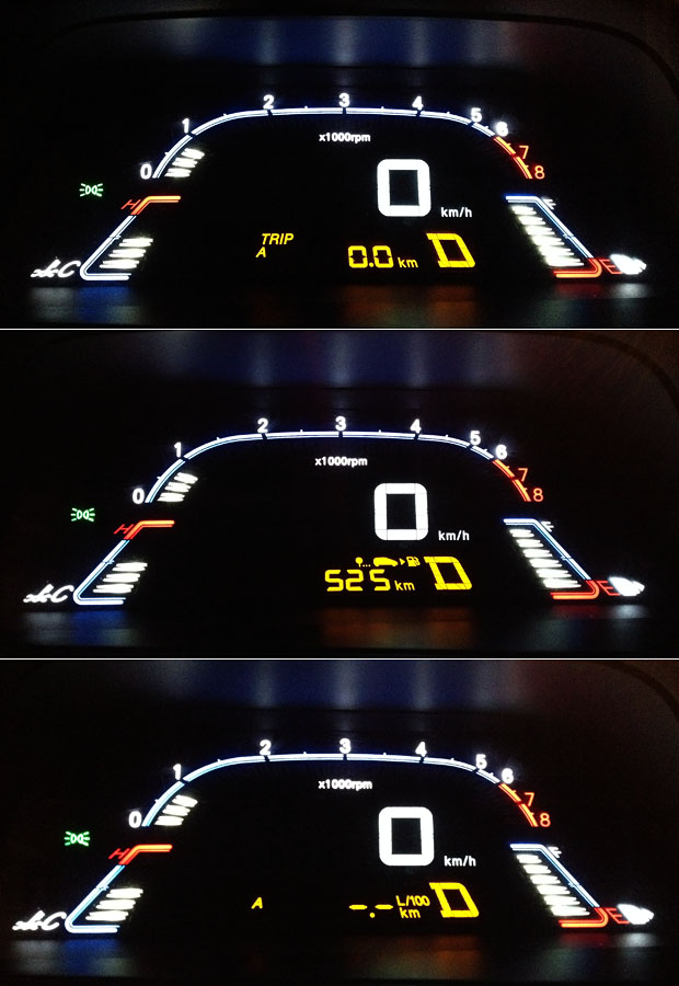 出發前加滿油,同時將旅程電腦的里程數與平均油耗歸零,此時顯示可行駛里程為525km。