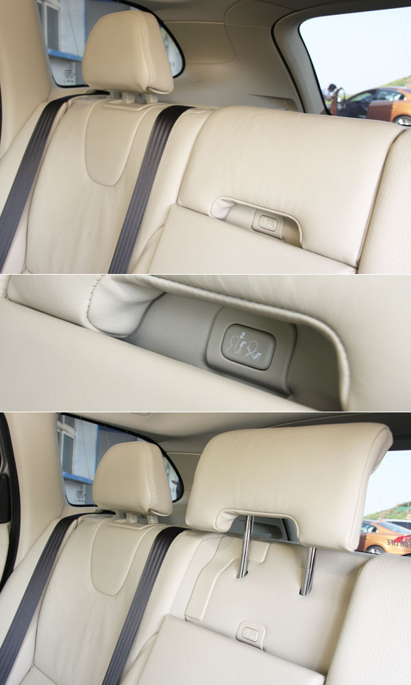 後座椅中央頭枕可透過一按鍵控制進行上下伸縮調整。