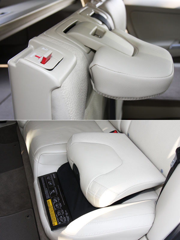 後座椅除了頭枕可下倒提升駕駛後方視野外,還具備內建式輔助式兒童安全座椅功能。