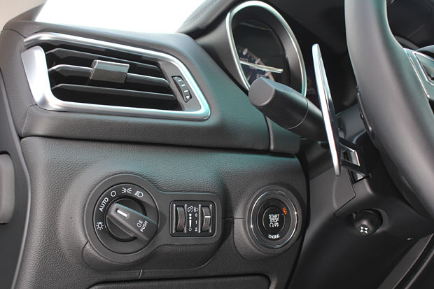 燈組控制總成與按鍵啟動系統味於方向盤左側,從此角度也可見到電動四向的方向盤調整機制。