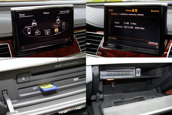Juke box數位音樂管理介面 (20GB)、DVD 播放器、DVD /CD 換片機、Audi Music interface多媒體播放器連接埠等功能。