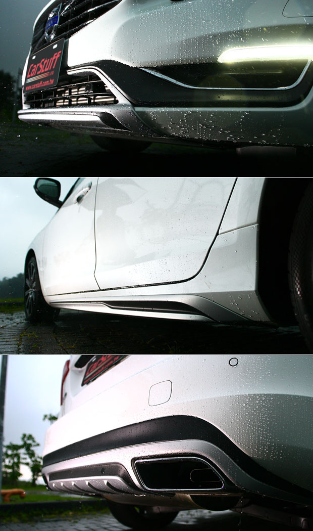 試駕車型外觀加諸風格套件,包含前保桿氣壩飾板(21,282元)、車側飾板(31,259元)、後保桿飾板(40,713元),皆為含工完稅價。
