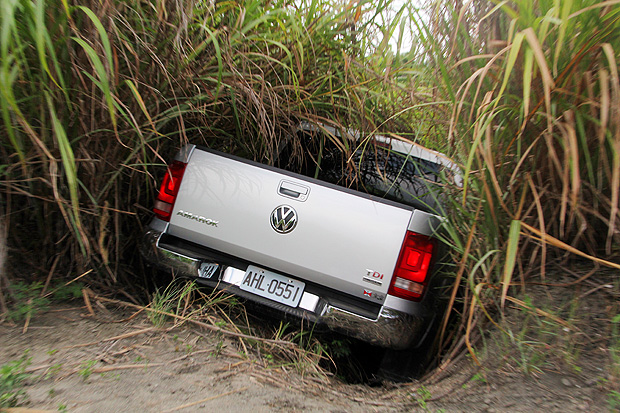 而由梯形大樑式底盤所帶來的優異剛性與越野能力,也反應在Amarok的裂地穿越能力上,無論是刻意為之的40度側傾坡面,或者是俗稱的大象坑路段,對於Amarok而言也不是無法克服的障礙。進入40度側傾坡面,傾斜的車身雖然讓車內人坐姿全然走樣,但Amarok的四輪仍然緊貼在路面,沒有因為坡度而下滑,車體也並未發出抗議的異音,即使在坡面上停留也依然神色自若。