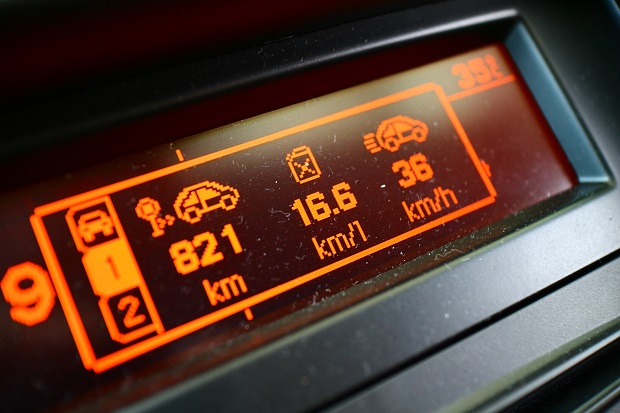 儀錶上顯示的油量計也顯示16.6km/l,與真實油耗差距相當小(左側里程則過早歸零,因此以819.1km計)。
