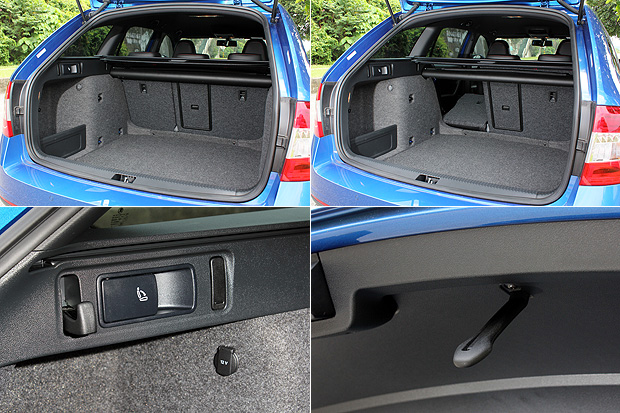 不過,即使置入了更具性能風味的細節點綴,Octavia Combi RS終究還是一輛旅行車,最迷人的空間表現仍被保留下來,不僅是採用MQB平台後,軸距拉長至2680mm後所帶來的廣闊後座空間,尾門打開後才讓人感到別有洞天。受惠於延伸至後方的車頂與多出的D柱,使Octavia Combi RS本身就具有610公升的行李廂容積,配合上可6/4分離傾倒的後座椅背,還能夠一舉擴充至1718公升。同時還附上後座椅背快速釋放拉柄、行李廂格板與分隔網,創造出多元的使用彈性。不過,前代Octavia Combi位於行李箱左右兩側的收納盒則被省略,改以障板取代,少了兩處可收納小物的隱私空間稍嫌可惜。