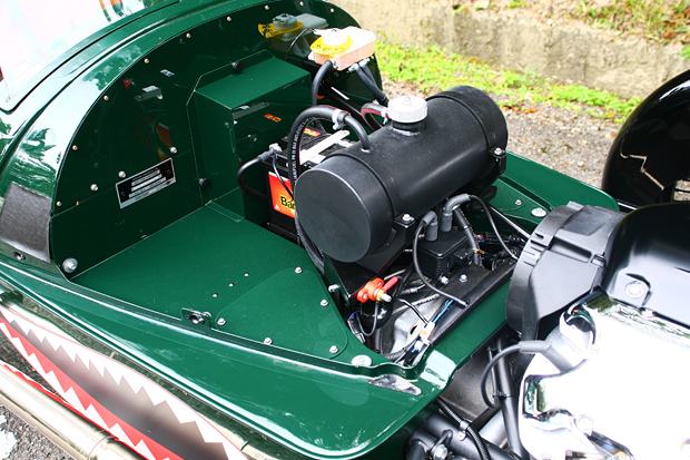 為了對抗新世界的敵人,美國隊長賦予了更進步的武器,的確,Morgan也有此本意,浴火重生的Morgan 3 Wheeler,健壯驚奇的骨骼不變,但也稍添了些現代化的科技,那前方由Harley- Davidson改裝達人S&S所打造的1976c.c.汽油引擎,或是方向燈中暗藏的LED,都是你可從其身上找到一點點現代時空的蛛絲馬跡,但也就僅此而已,多了,那可就不是傳家寶應該的身型。
