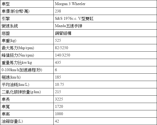 半世紀前的造車精神再現,於汽車文化相對淺層的臺灣道路上造成了強烈衝擊,唯一共鳴的,應該是臺灣那與山頂洞人時代相對等的道路法規等級,只能藉由試車牌的短暫上路,賦予了Morgan 3 Wheeler上路奔馳的應有正義。或許這主持正義的堅持與精神,因為這法規與238萬的門檻而讓人卻步,但如果有此能力,感受這半世紀不變的凍齡,絕對會讓你的生命更有意義。
