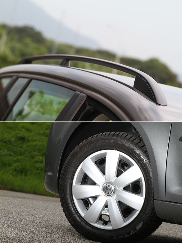 霧黑色的車頂置物架、鐵圈設計搭配輪圈飾蓋,顯示出Touran 1.6TDI的入門經濟地位。