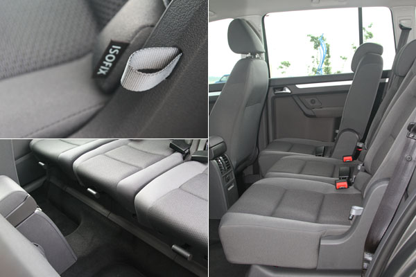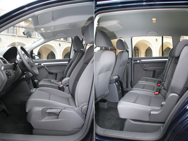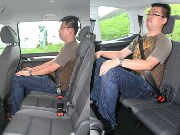 如同筆者前段所述,2003年現身的VW Touran,乃是基於Golf底盤所衍生出的轎式休旅車款,定位清楚的介於Golf/Golf Plus與Sharan之間,上下兩方的特點融合後,Touran有了Golf車系的五座基礎,又加上了Sharan具有的第三排座椅格局,但畢竟受限於底盤的基礎,第三排座椅沒有如同前兩排座椅的同等待遇,因此〝5+2〞的座椅安排,Touran如此,所有對手也是如此。