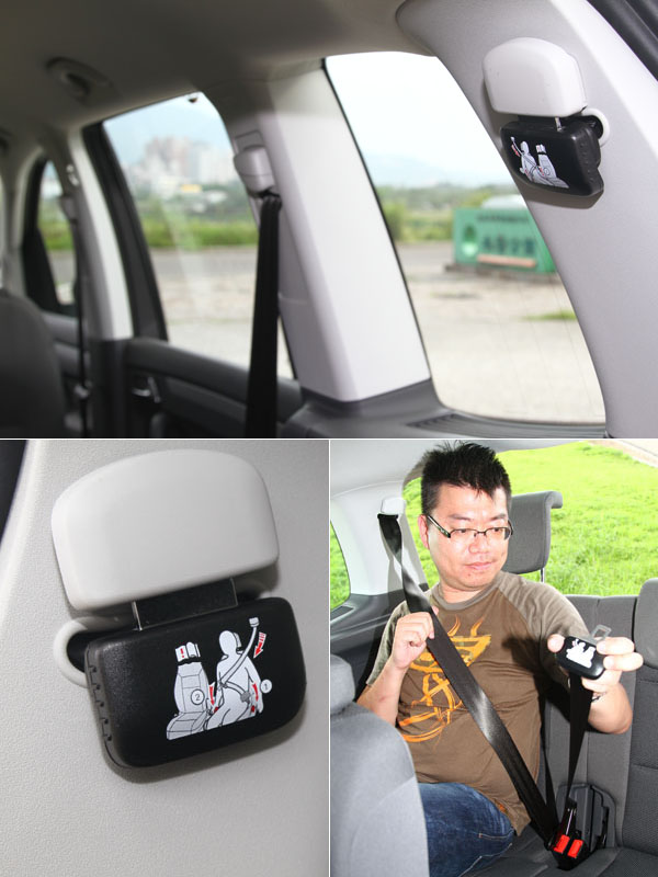 Touran車室內三排座椅皆提供三點式安全帶,第三排的設計較為特殊,安全帶扣環上有操作指示。