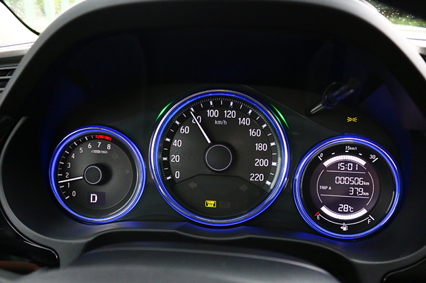 三環儀表判讀資訊容易且清晰。右方旅程電腦透過上方按鈕切換,簡單明瞭。