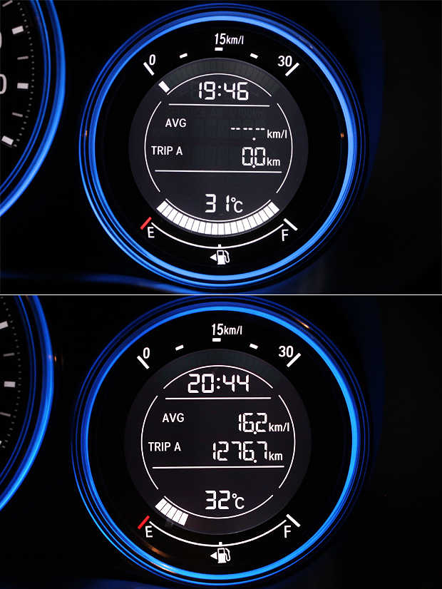 如儀表所示,此行共行駛了1276.7公里之遠,電腦顯示之平均油耗達16.2km/L。