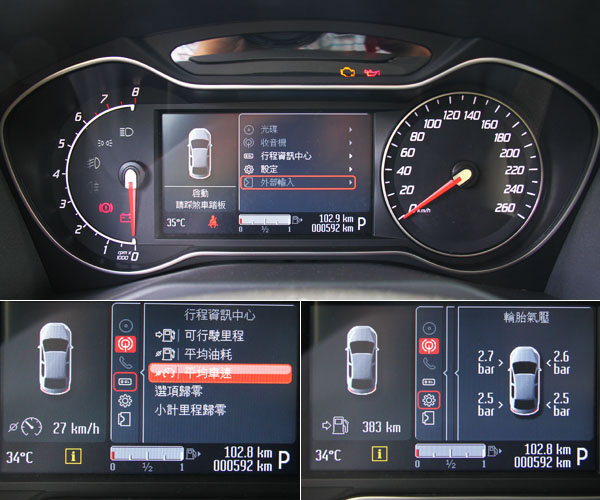 Mondeo EcoBoost運動旗艦車型儀表版將Ford Convers+數位化5.8吋液晶整合式儀表版列為標準配備,更配備國產同級車唯一搭載的胎壓監測系統(TPMS)。