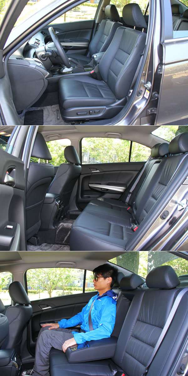 Mondeo與Accord,兩者一為2850mm、一為2800mm的軸距長度,成為了國產房車級距的空間冠亞軍,不過此時,Accord則顯示出在美國拿下多達25次權威汽車媒體Car and Drive十大好車肯定之姿態,雖然軸距長度較Mondeo短上50mm,車寬也少了41mm,但在刻意壓低的控台總成、搭配前斜的控台造形設計,兩側門版的厚度控制與座椅造型的修飾,乘坐在Accord的前後座,開闊感是相對優秀的,有效降低乘坐車室內的壓力,提升了拉長旅程後的自在,加上一等一的空調冷房效果,駕馭著Accord於市區中遊走,整體的氛圍環境,絕對是同級中的指標。