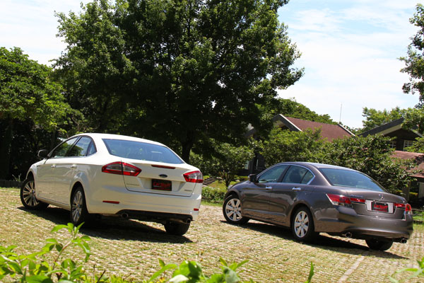 於經濟部能源局的油耗測試中,兩者皆以歐盟(1999/100/EC)法規測試,Mondeo EcoBoost平均油耗為12.4km/L,年耗油量為1210L,在1800-2400c.c.的等級中能源效率等級為2(1為耗油較少,5為耗油較多);至於Accord 3.5L V6,平均油耗為9.9km/L,年耗油量為1515L,在3000-3600c.c.的等級中能源效率等級為3。