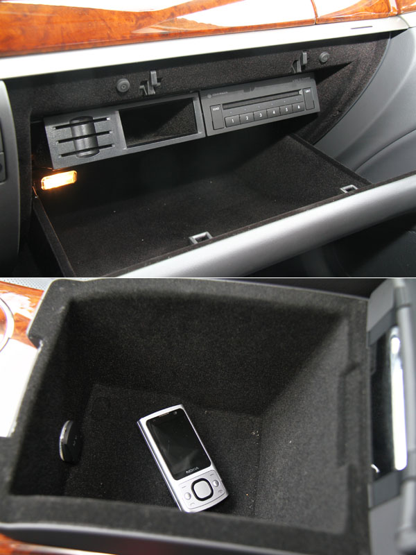 副手席手套箱與中央扶手下置物空間一覽。