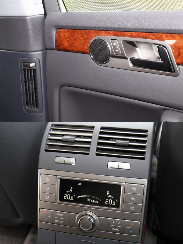 Phaeton車系上有許多特殊的設計,如空調的開啟與控制模組。