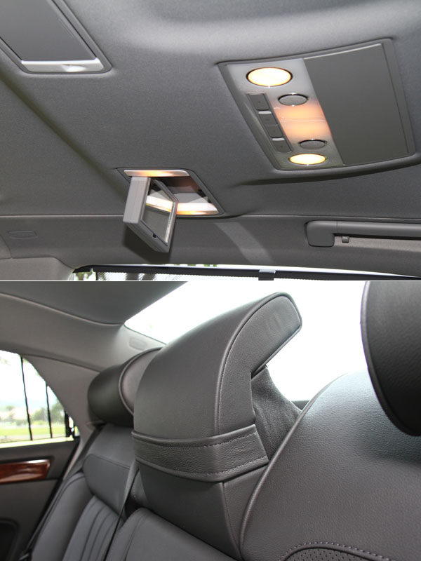 後座專屬的照明裝置與梳妝鏡;後座中央頭枕則為收納式設計。