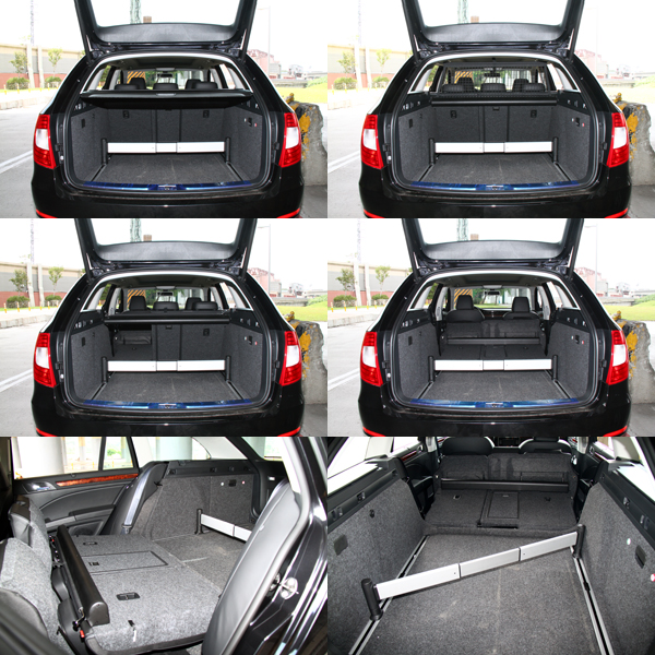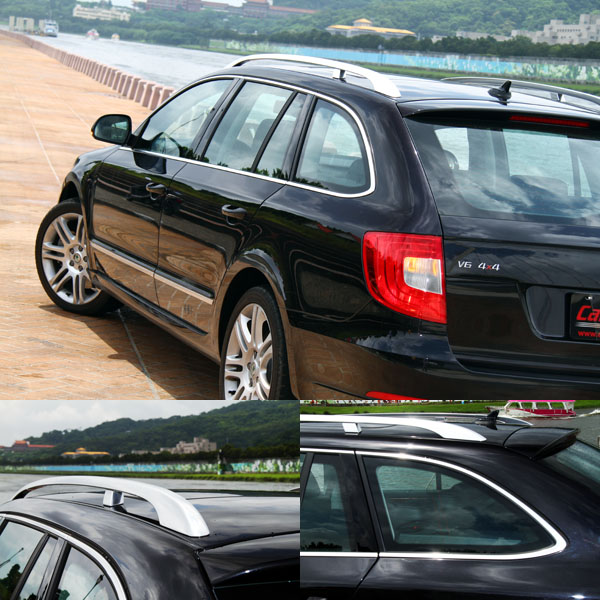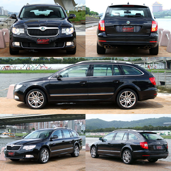 過去,在VW集團資源共享下,Skoda前一個世代的車款,大多在外型上都可以看見與VW部分車型共通的影子,但是自現行Superb車系開始,Skoda逐漸建立了屬於自己的家族風格,充分融合了百年品牌的悠久文化,尤其就是在Superb車系上展露無疑,於內斂中散發出波西米亞的古典氣息;而Superb Combi在原來的房車基礎下,以簡潔的線條延伸出尾廂,在原本就已經頗受好評的車內空間中,提供更為便利的載物機能。軸距長度為2761mm的Superb Combi,數據上並不是特別亮眼,但是在縱向的空間表現上卻有著媲美軸距達2900mm之大型房車地水準,而在行李廂部分在一般狀態下即有633L的容積,若配合後座椅背翻倒後,可擴充至1865L,而且在行李箱兩側,原廠也以平整化的設計,讓載物空間更為完整,同時在搭配上設於兩側的掛勾與行李廂格桿等貼新設計,強化置物的便利性,同時在旗艦的3.6 FSI車型上還配置了電動尾門設計,讓嬌小的女性不用再費力地開關尾門。