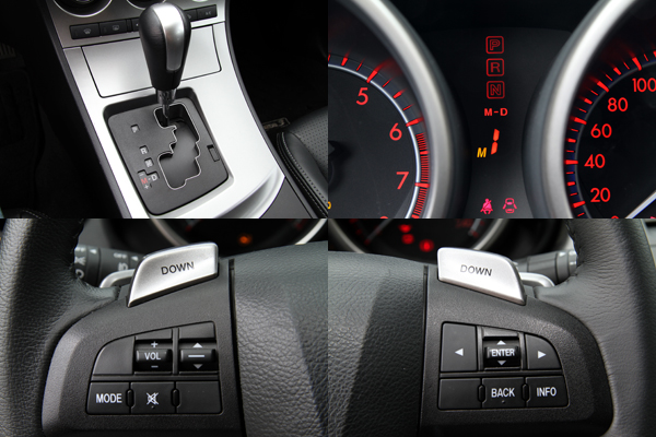 Mazda3 2.5S新配置了五速手自排變速系統,並且具備方向盤換檔機制,當切入手排模式後,儀錶版中央顯示幕便會顯示M字樣與檔位。
