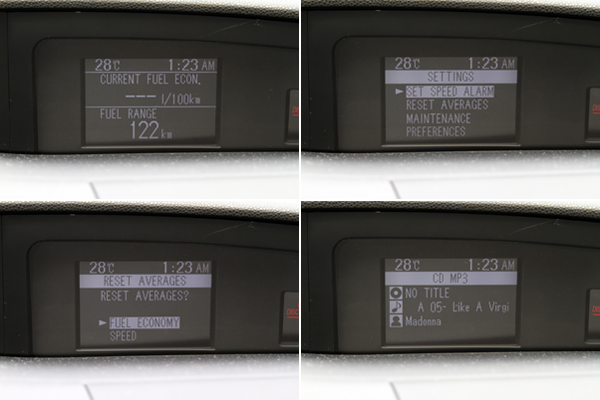 全新的行車資訊功能顯示幕,採多頁顯示架構,但所有調整功能則是集中於單一頁面中分層,需切換至調整頁面方可操作各功能,而非在該顯示頁面中調整。