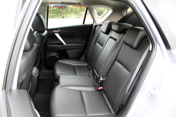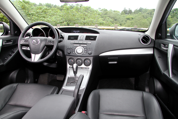 空間表現上,前座部分由於大面積地中控台設計,以及搭配上厚實的門內板與座椅,讓人有飛機駕駛台的環艙效果,視覺上顯得相當緊湊,後座空間也因為高腰線、窄車窗設計,視野開闊性有些不如預期,不過實際乘坐空間相較於前代車型還是有所進步, 而且無論前後座的座椅支撐性皆屬上乘,不似部分國產車所配置的座椅,空有厚實外表卻無法提供良好的支撐,讓Mazda3的乘坐舒適性部分得到不錯的分數。