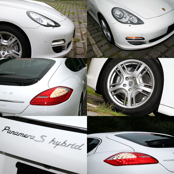 相較於Panamera車系中其他版本車型,Panamera S Hybrid在外觀上並沒有太多的不同,基本配置也都與Panamera S相仿,除了車尾的型號銘牌可辨識身分外,在前車門上另有Hybrid字樣銘牌則是另一個易於分辨之處。因此Panamera S Hybrid最大的特色還是在其動力系統上。
