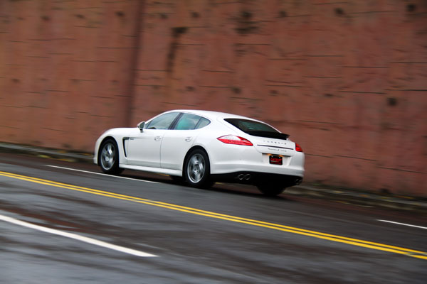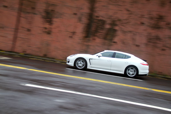 在試駕當天,前半段過程中我們都著重於複合動力的運作,未太過試探它的動能表現,直到試駕即將結束,欲由高速公路回到還車地點時才稍為催逼了一下性能,途中正好遇到一輛英國小鋼砲在前奔馳,二話不說中踩下油門向前追去,此時Panamera S Hybrid在高速下的高度穩定性完全展現,當我自顧著與那輛小鋼砲纏鬥時,卻忘了看時速,直到交流道就在眼前才稍為瞄了一下時速錶,發現原來我在這短短地瘋狂加速過程中,刻度已達到近19格的位置,快得無聲無息,而且是在大雨中奔馳,高速換道完全都不會有輕飄的感覺,在短暫的追逐中,就像是擅長高速作戰的蘇愷27遇到了善短距離纏鬥的F-16,沒有勝負,但我卻已經感受到Panamera S Hybrid那份屬於Porsche該有的跑車性格。