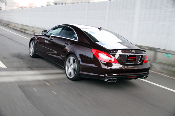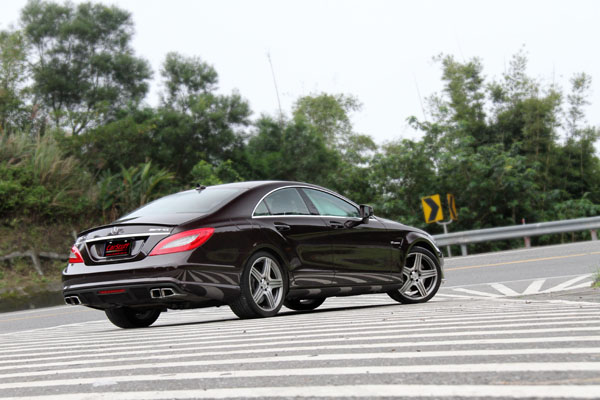 然而近來試駕的Mercedes-Benz性能車,在動態表現上都有越來越活潑的跡象,CLS 63 AMG也是如此,在高動力驅駛下,讓CLS 63 AMG跑起來已經相當輕盈,而新型態的轉向系統,動力輔助力道在不同速度下的轉變差易也變得明顯,因此在初起步時轉向手感是較輕的,隨著速度提升就會跟著加重轉向手感,轉向機構的齒比也會跟著改變,在高速下,方向盤轉動小角度即可達到相對較多的輪胎轉幅,如此一來也可避免駕駛在高速失控時轉向過多,導致車輛動態更難以控制,不過這樣的設定在連續彎道上行駛,在進出彎的瞬間車速轉換與轉向時,便會出現不太協調的現象,急減速與急加速使得轉向系統應變不及,駕駛必須多花一點心思注意轉動方向盤的幅度,在這種情況下,會出現進彎前因速度降低,轉動方向盤的角度比預期的少,使得車輛在彎中前半段呈現轉向不足,當過了彎頂點開始加速,若油門踩太深,後驅車轉向過度的情形又會出現,車尾會順勢向外帶出,這時電子系統就會視狀況介入,切斷動力,這讓人會有種忽然被噎住的感覺,若是將ESP系統切至Sport模式下,雖然介入時機會較晚,但過猛的動力不易控制,必須更精準的駕駛技巧才能讓車跑得快又穩,對於駕駛的技術門檻也跟著提高,因此在大多數的情況下,我們都不太敢在一般道路上將ESP系統完全關閉,以防萬一,所以,上述的動態表現,看似活潑,但卻少了些Mercedes-Benz以往的安定感,若要開得快又順,得花一點時間適應,幾次在速度容許度較寬的彎道中,刻意以較高的速度將車丟進彎裡,又會發現其實它的極限遠比想像高,為了對應過猛動力所配置的電子系統,反而給人車更多的隔閡感,可掌握度不夠直接,加上CLS 63 AMG長軸距設定與近五米的車長,也略微影響了他的靈活度,看來多彎的山道並不是CLS 63 AMG擅長的場域,寬闊的公路才是CLS 63 AMG可以盡情揮灑的舞台。
