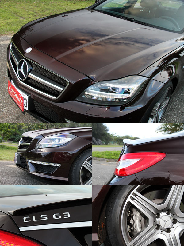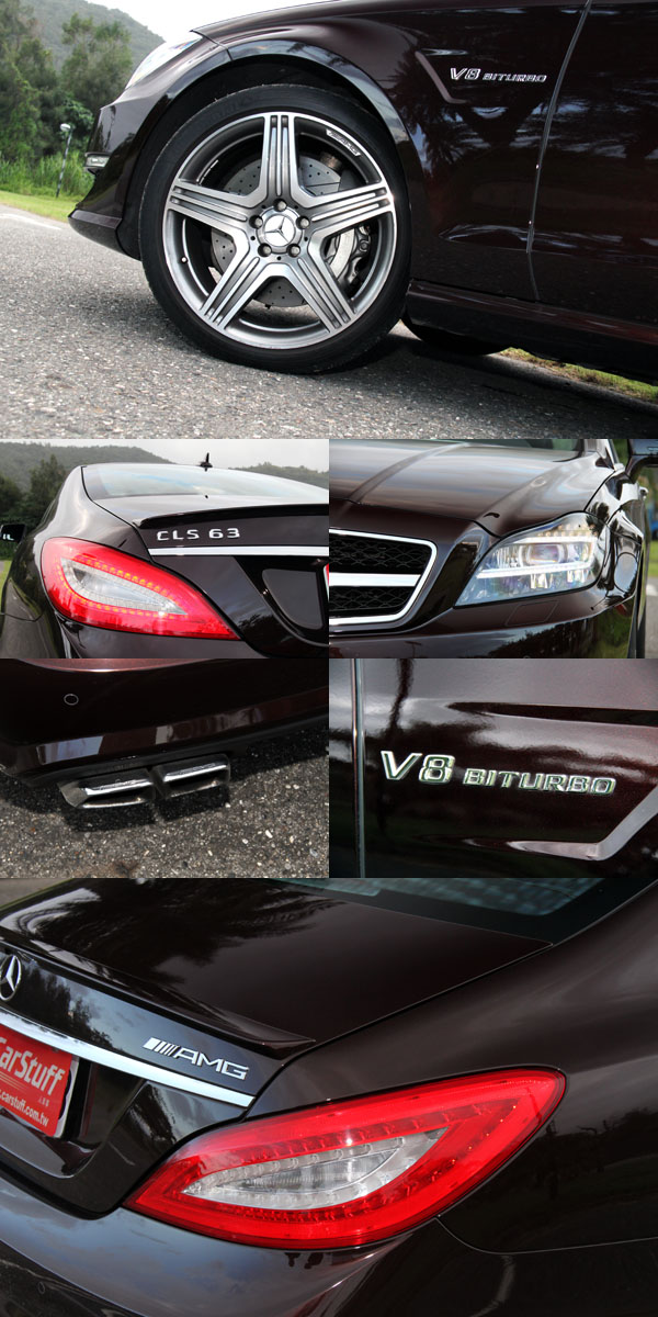 2003年Mercedes-Benz推出了創新級距地CLS車系,以獨特的四門跑車概念震撼車壇,也引領了其他車廠仿效,2010年巴黎車展,原廠代號W218的全新世代CLS問市,以延續著F800 Style Concept的外觀設計基礎,在原本的四門跑車外型基礎下,融入了更多的銳角設計,將整體車形更為力體化,呼應SLS AMG的獨特美學,水箱護罩與引擎蓋獨立的特殊設計,車頭正中央明亮的大型三芒星廠徽與大型鍍鉻橫柵,都是新世代Mercedes-Benz性能車可以見到的共通元素,被設計師暱稱為「垂墜腰線(dropping line)」的圓弧車身曲線,在搭配上上翹的尾翼與厚實地後輪拱,撐起了整輛車的視覺張力,多層次的板件成為光影變化的舞台,在不同角度下,都可以看見CLS 的肌肉感,而本次試駕的CLS 63 AMG則多了專屬的AMG外觀套件,更增添許多霸氣。