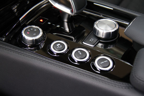 中央鞍座左側的一排控制鈕可說是CLS 63 AMG的電子系統控制中樞,包含了〈由上至下〉變速箱模式、ESP系統模式、避震系統模式與AMG車主自訂記憶鈕等。
