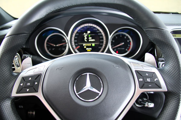 CLS 63 AMG也配置了全新一代的多功能方向盤,多功能按鍵皆改為以矩形做為排列組合基礎,便具備方向盤換檔撥片機構。