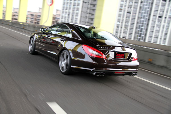 在當今各車廠不斷競逐性能車動力下,動輒500hp以上的車款越來越多,不過每當接觸動力如此強大的車款,還是不免感到興奮;實際試駕,搭載全新5.5升雙渦輪增壓引擎的CLS 63 AMG,雖然最大馬力數據與E 63 AMG所使用的6.2升V8自然引擎相同,但是由於改採渦輪增壓配置,重踩油門、增壓器開啟後瞬間湧出動力還是比自然進氣引擎威猛,試駕過程中,我們找了一段車流量少的半封閉路段,使用RACE START起步模式試試它的加速威力,當欲使用RACE START起步模式時,需將ESP系統切至Sport模式,並且檔位需於D檔,即可將變速箱模式切換鈕轉至〝RS〞模式中,此時系統便會透過儀錶板中央的多功能顯示幕詢問駕駛是否使用RACE START起步模式,若要RACE START起步模式,只要輕撥方向盤右後方的升檔撥片即可進入RACE START起步模式,此時即可眾踩柱煞車,深踩油門、拉高轉速起步,當我們用約4000rpm左右的轉速起步,放開煞車、繼續踩下油門的瞬間,整輛車會以相當順暢的姿態急駛而出,當你還以為力道怎麼沒有想像中猛爆時,其實時速早已衝破100km/h,加速過程快到你來不及感受動力迸發的瞬間力道,如今這種配有彈射起步模式的車款,在良好地電子系統搭配下,任誰都可以成為頂尖的零四加速車手。在體驗過起步加速的快感後,在一般道路或高速公路行駛,於任何情況下,應該很難會有人認為它的動力會不夠用,甚至對於大多數的消費者而言,甚至還強悍過了頭,別說超過動力500hp,許多人可能一輩子都沒開過超過200hp的車子,所以CLS 63 AMG在性能上的表現實在是無需贅述,簡單講:就是快,只要油門踩深一點就會給你滿滿的加速感,更重要的是他還是一輛載著四個人一同飛馳地四門跑房車。