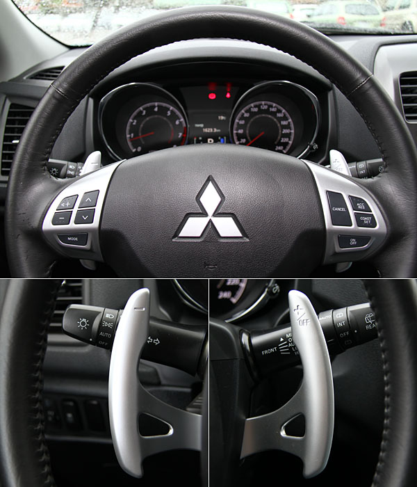 多功能方向盤包覆的皮革質感普通,但後方的換檔撥片操作起來十分就手。