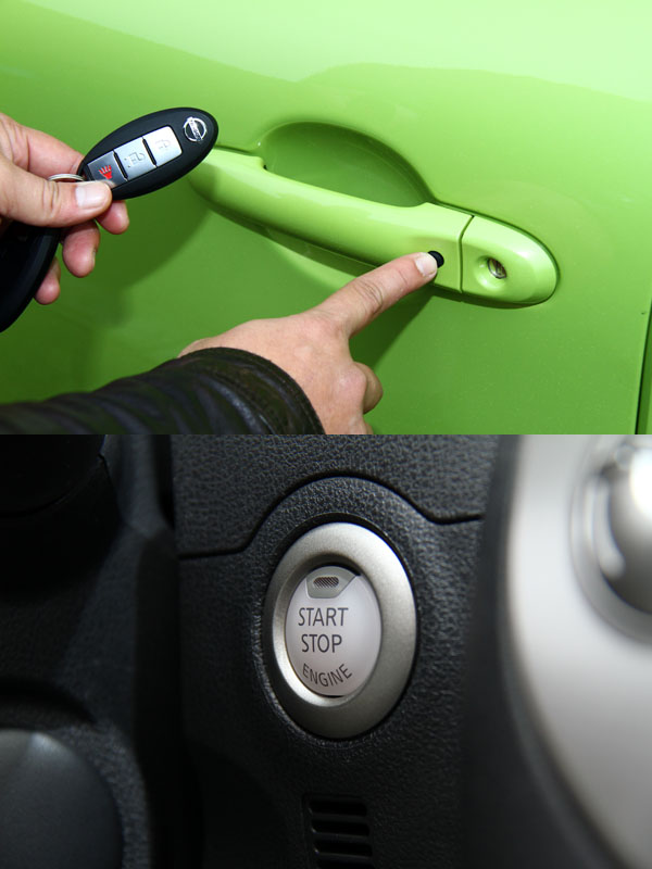 全新March配置了感應式I-KEY,同時結合Push Start按鈕,車主只要進入感應範圍內(80cm),就能直接開啟車門。