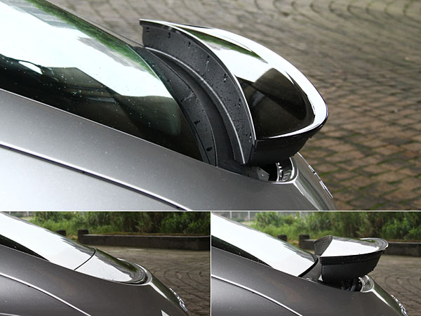 車尾的尾翼會於車速超過90km/h自動升起,也可以手動於車室內自行控制。