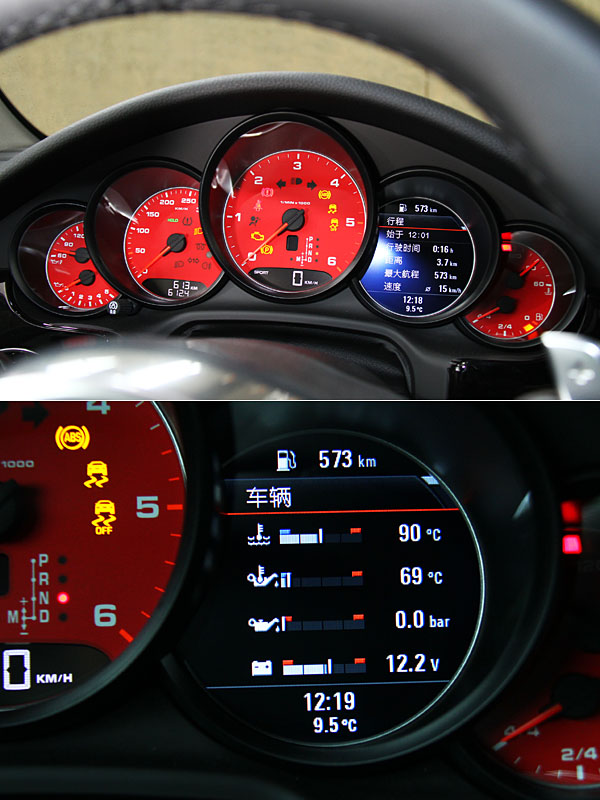 紅色儀表板為選配項目;五圓環式的儀表板中,右二同樣為鋁程電腦顯示幕。