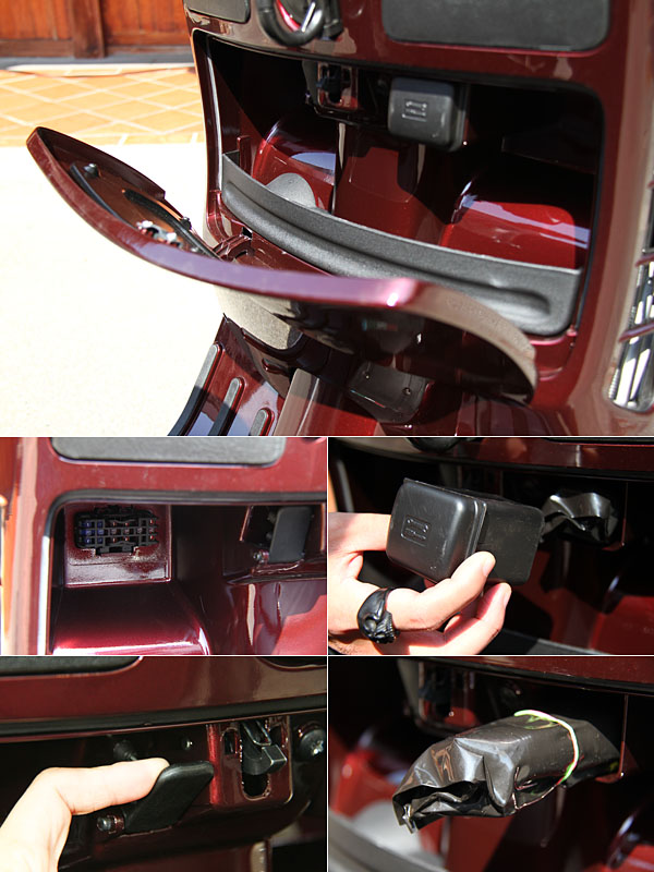 打開前置物箱,內有保險絲盒、工具盒與手動式坐墊開關拉桿。