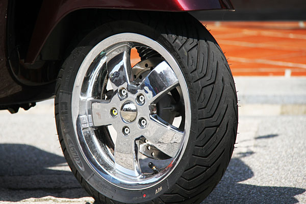 與兄弟車型GTS 300 ie Super霧黑輪圈不同,GTV 300 ie輪圈採取電鍍亮面設計。