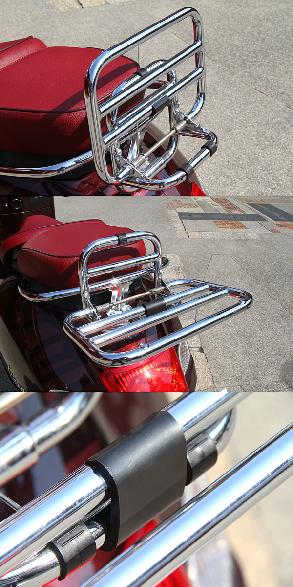 後行李架採取收納設計,並透過一塑膠片來固定。