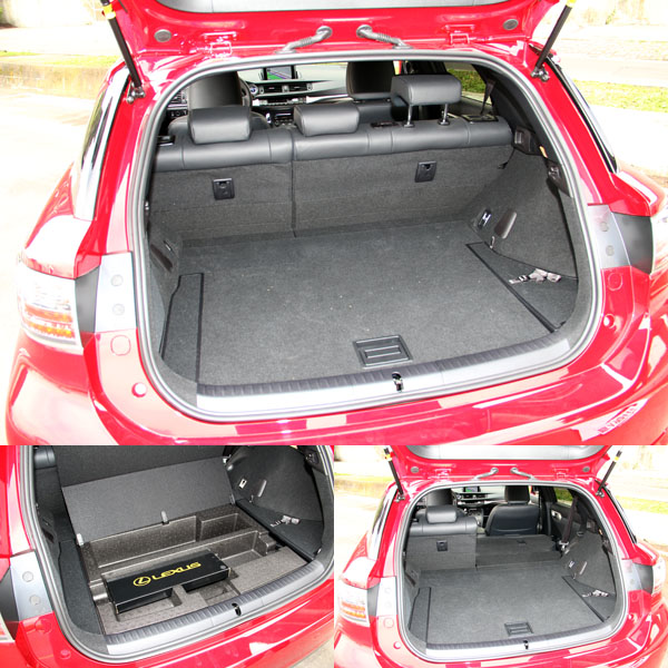 CT 200 h車系尾廂可藉著後座椅背翻倒創造出相當平整的載物空間,行李廂底板下也另設有置物盒。