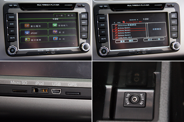 Touran 1.9 TDI配備有VW全新地螢幕觸控多媒體影音系統,除了於主機下方配有多種外接音源連接埠外,於前座中央扶手下方另有一組AUX-IN連接埠,具備多元的外接機能。