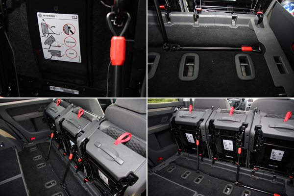 第二排座椅具備完全翻起功能,翻起時後方還配有支撐挺桿固定座椅,避免座椅於行進間不當晃動。