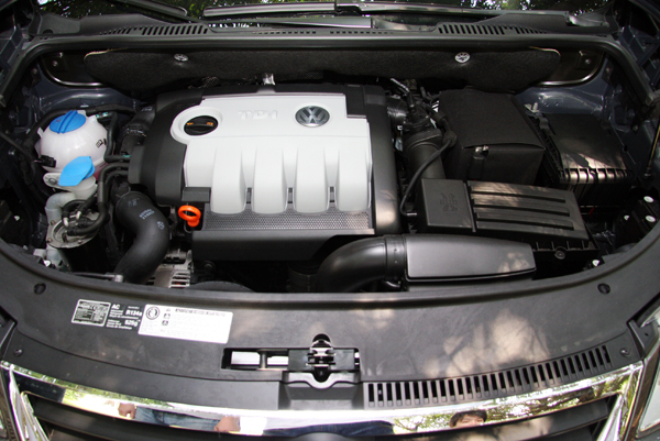 動力系統方面,引進台灣的Touran搭載了大家熟悉、泛用於VW集團的1.9L TDI引擎,並且搭配六速DSG雙離合器自手排變速系統,可輸出105ps/4000rpm最大馬力與25.5kgm/1900rpm最大扭力,帳面數據平平,不過實際試駕後,靠著低轉速大扭力的特性,卻也相當夠用,加上DSG已受好評地動力傳輸效率,實際地動力表現較預期來得好,在試駕的過程中,於白沙灣完成拍攝工作時,正好遇到搭不到公車的大學生攔下我們,想搭便車,我們也藉機試試Touran 1.9 TDI於滿載時的動力表現,也就順道載他們一程,在淡水方向的二號省道上,即使面對連續上下坡路面,或是再加速超車,Touran 1.9 TDI都沒有出現力有未逮的情形,即使在滿載的情況下,只要擅用檔位,仍舊可以跑得虎虎生風,如此一試也完全排除了滿載出遊、動力不足的疑慮。