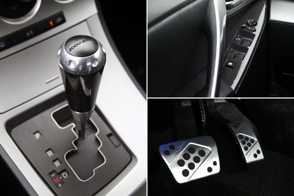在座艙內,亦配置了Zoom - Zoom 排檔桿、賽車踏板與類碳纖門飾板等部品。