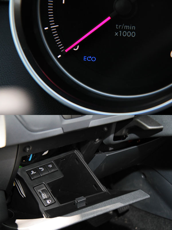 Stop & Start 引擎怠速啟閉系統為508 1.6 e-HDi最重要的節能利器,開啟後,儀錶板中藍色eco燈號便會亮起,但是將切換開關設至於方向盤左側下方的零錢盒內,大大影響了便利性。